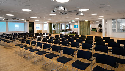 In the new urban district of Stockholm, Hagastaden, you will find a state-of-the-art conference facility with 10 meeting rooms, where the largest can accommodate up to 200 people and an exhibition area where up to 300 people can meet and mingle.